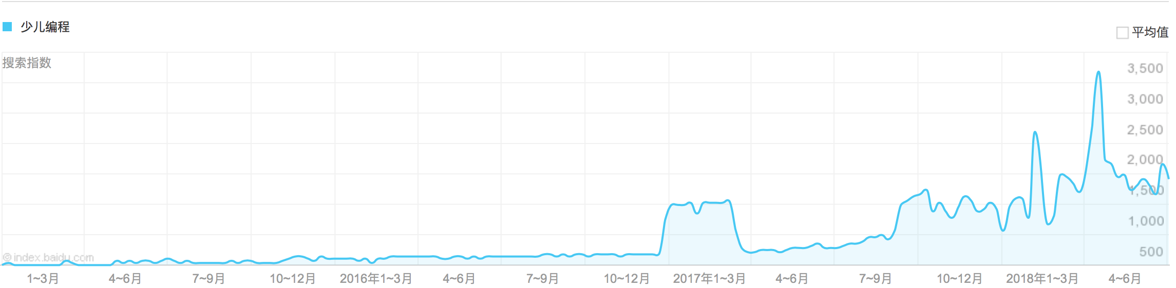 从百度指数的变化可以看出,少儿编程的关注度在2017年末、2018年初开始出现激增。