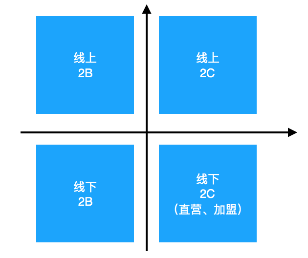 经过与创业者的访谈,我们大致将模式按照2B或2C,线上或线下分为四个象限: