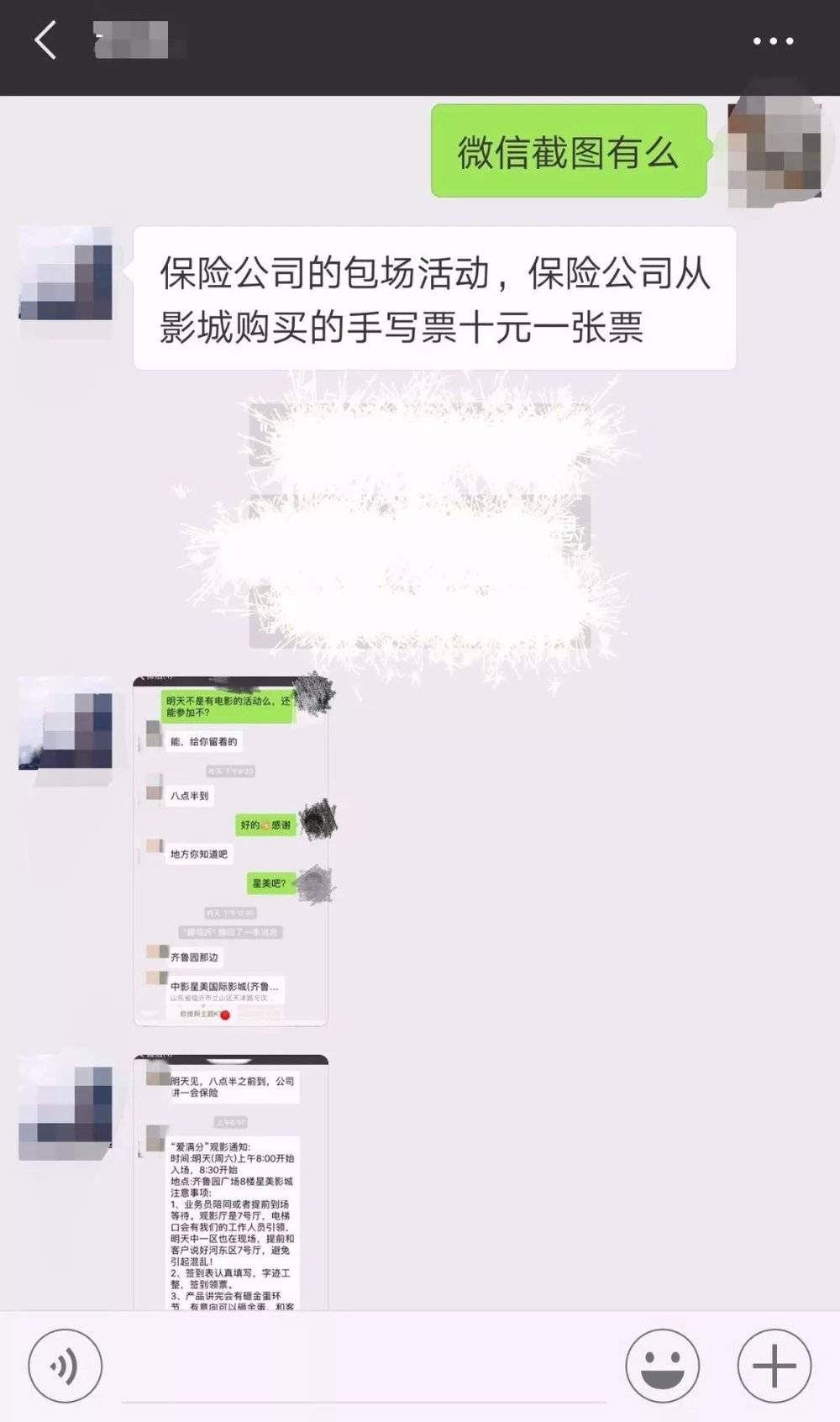 据该影院经理张某爆料,7月7日,平安保险组织客户在临沂市中美国际影城(齐鲁园店)包场观看《我不是药神》,影院就采用了“手写票”的形式,并无正规打印票,不录入影院票务系统。