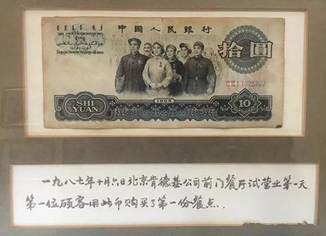 一九八七年十月六日,北京肯德基公司前门餐厅试营业第一天,第一位顾客用此币购买了第一份餐点