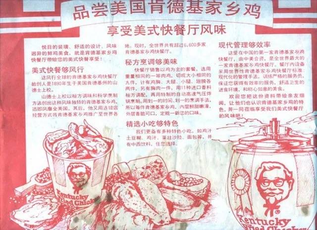 虎嗅注:肯德基进入中国的时候,山德士上校的画像憨态可掬,被贴在店门口招徕生意,一时之间,成为了城中的“洋玩意”。尽管定价高,但大家依旧迅速热爱上了这个“国际化连锁快餐”,除了赶时髦以外,吃肯德基这件事似乎也能证明一下身份。你第一次吃肯德基是什么时候?