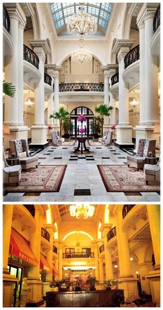 上海华尔道夫酒店大堂。左侧曾是上海第一家肯德基门店