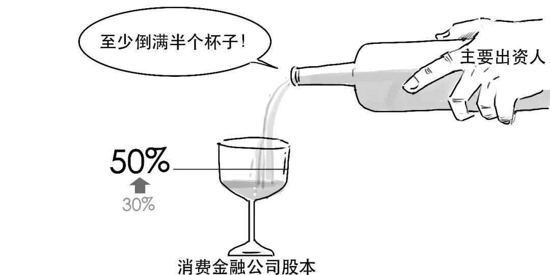 《征求意见稿》对消费金融公司的主要出资人持股比例,由不低于30%,提高到不低于50%。