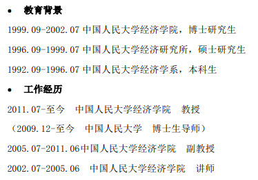 翻翻他在人大经济学院官网上放出的简历会发现,国际政治经济其实并不在他的主要研究范围内。
