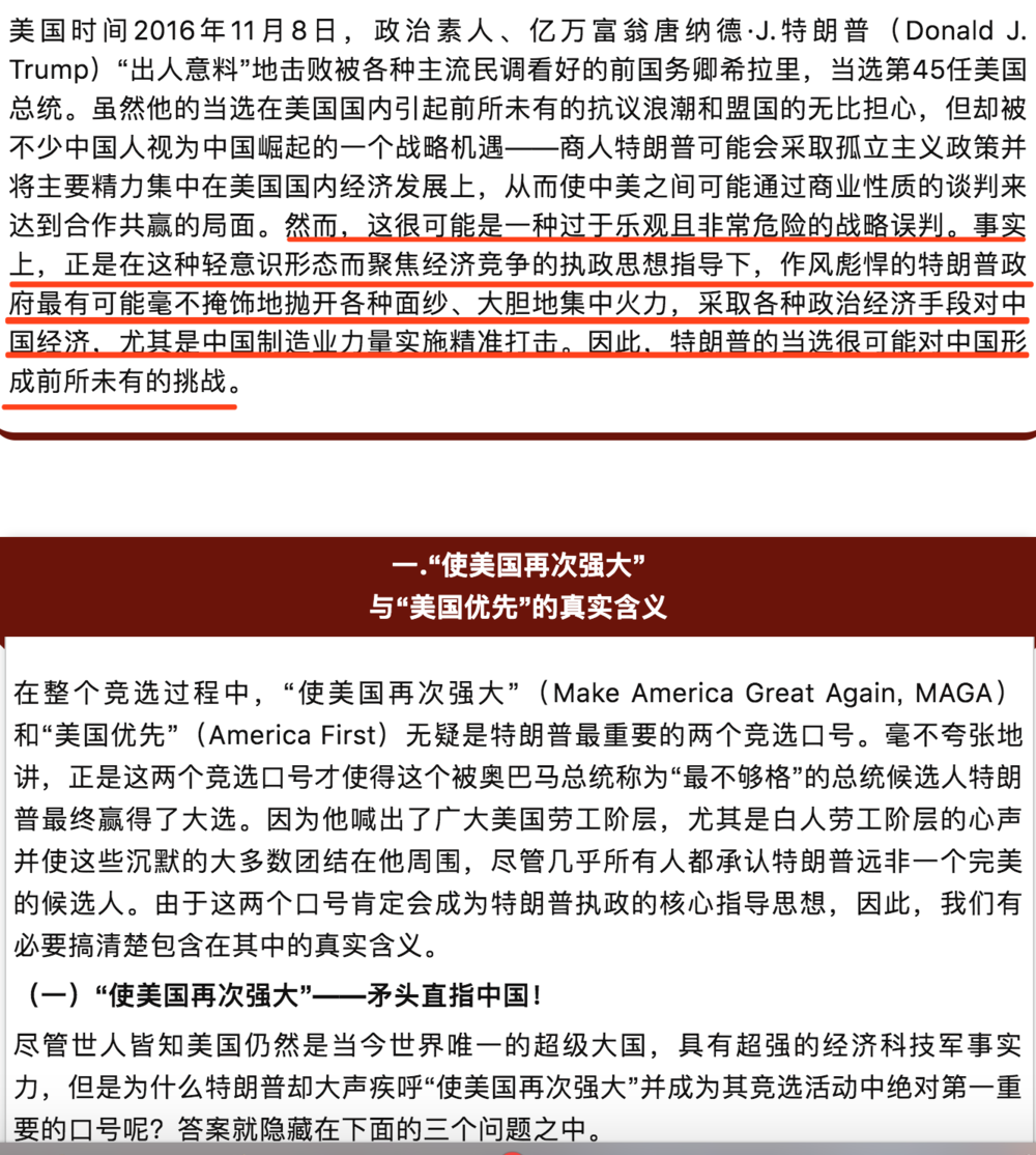 特朗普在大选中胜出时,国内普遍持乐观态度,认为特朗普能够为崛起中的中国提供更宽松的国际空间。这篇文章在当时并未引起广泛关注。