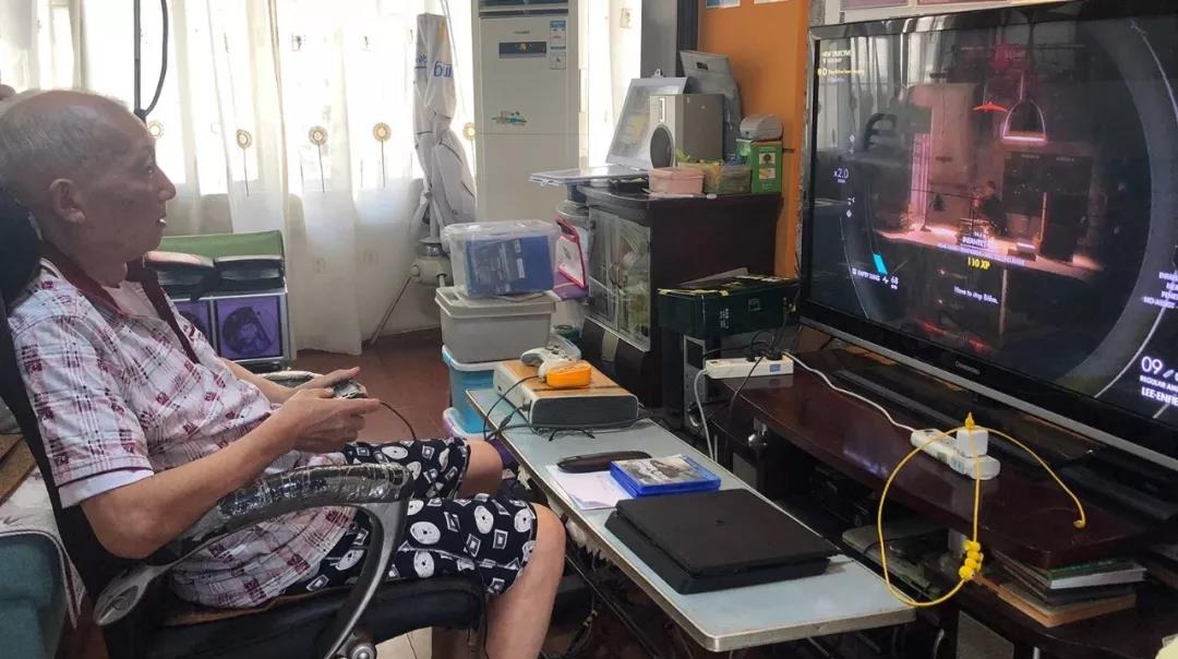 杨炳林看书读报时需要老花眼镜,正常对着电视打游戏没有半点问题——压枪、瞄准、爆头等一系列操作,利索得感觉不到他的年纪