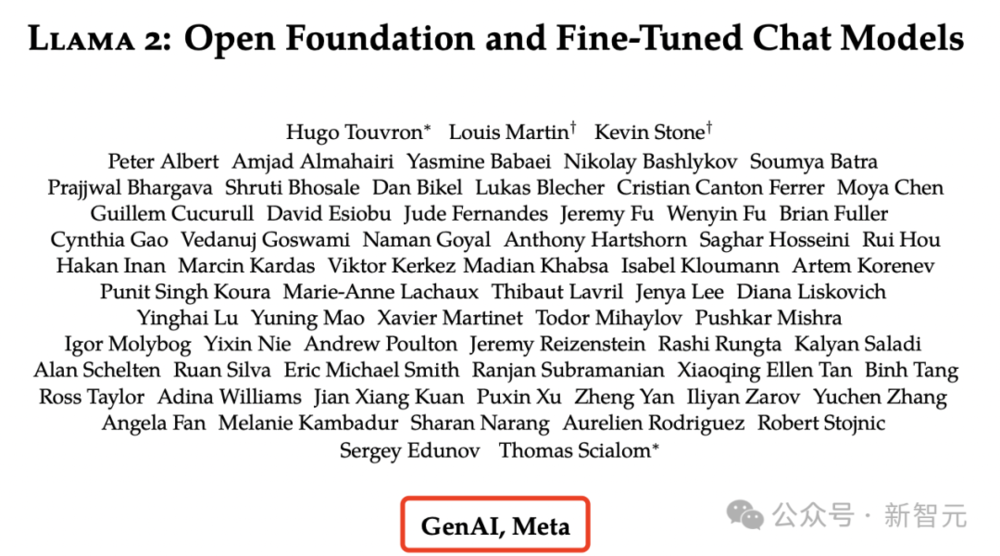 说来,GenAI这一团队的成立并未官宣。第一次露面还是在Llama 2发布时,在论文中所有作者下面一行中出现。