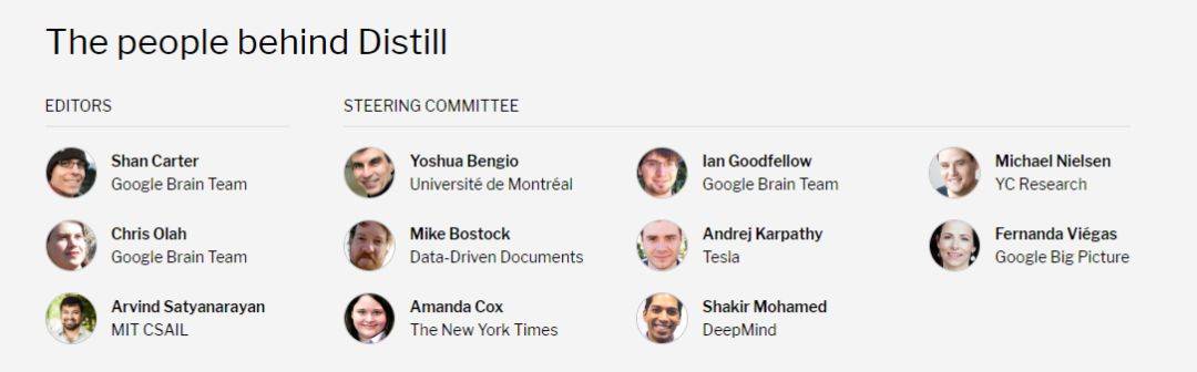 去年 3 月,谷歌联手 OpenAI 等推出了全新的开放式期刊平台 Distill,其指导委员会包括 Yoshua Bengio、Ian Goodfellow 等众多学界大牛。