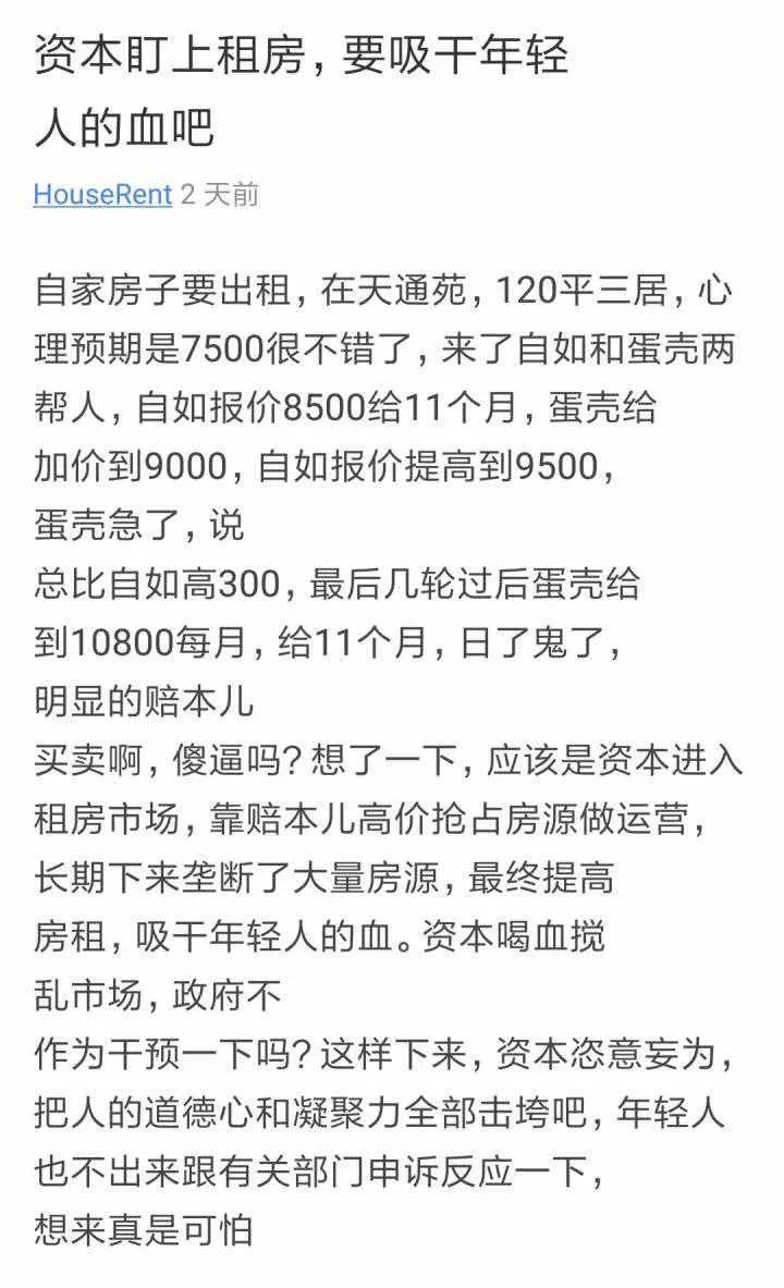 一则“自如和蛋壳抬高租金哄抢房源”的帖子,把长租公寓推上了舆论的风口浪尖。