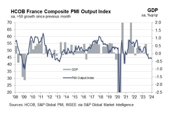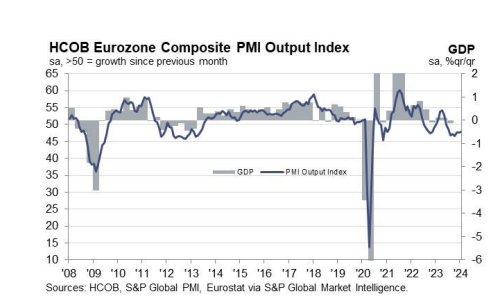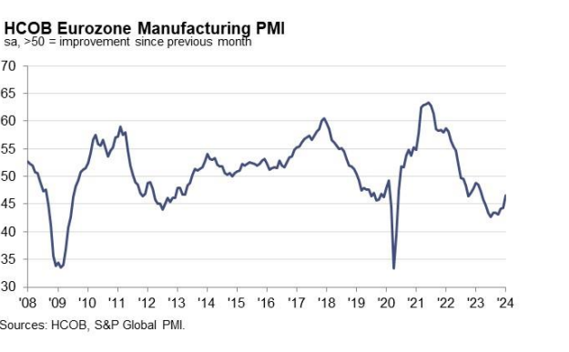 而产出成本的回升可能会让欧洲央行感到失望,他们正努力让通胀率回到2%的目标。在围绕欧洲央行最佳降息时机的持续讨论中,PMI指标呼应了欧央行鹰派情绪。