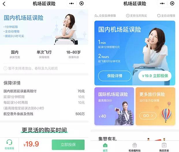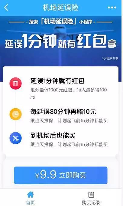 爱范儿也曾在相关文章中多次推荐过延误险,毕竟这些保险公司一开始都挺厚道,以众安为例:延误半小时起赔,每半小时赔 10 元,120 元封顶,起飞前 15 分钟均可买,只要 9.9,买不了吃亏买不了上当。