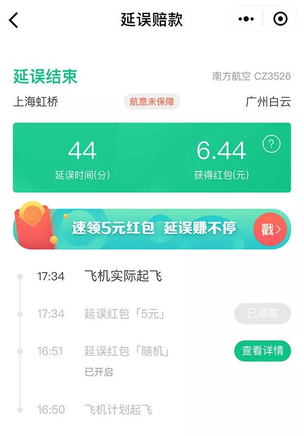 从 2015 年至今,陈先生大大小小拿到过 10 多次理赔,虽然金额越来越小,很多时候只有几块钱的赔偿,但胜在购买方便,随手开个赔偿红包也算是漫长的候机过程中为数不多的一点乐趣。