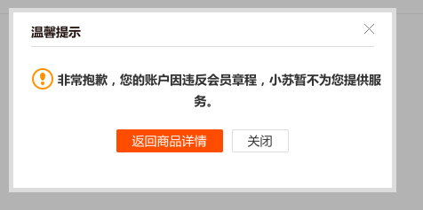 相比之下,苏宁易购可就狠得多了,一旦被拉黑,不仅是永无翻身之日,而且别说领优惠券了,自营商品一个也别想买,系统倒也不含糊,直接告诉你"违反会员章程",真不知道是京东那样死不承认但给人悔改机会的做法好一些,还是苏宁这样让人死个明白更好?