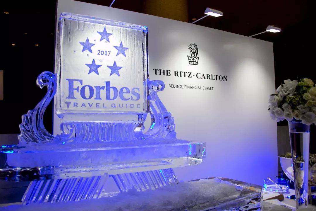 北京一家“丽思卡尔顿酒店”在显著位置展示其“福布斯旅游指南」五星评级的标志