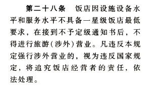 第一版评星规定明确告知中国旅店行业的从业者:凡是评不上星级的宾馆,一律不得接待外国顾客,违反此条的经营者将被“视为违反国家规定”,“依法处理”。