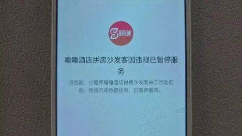 今年1月25日,“涉黄”信息被大量曝光后,微信官方以“涉及低俗、性暗示及色情新闻”为由,关停了“同住拼房酒店”小程序的服务资格。