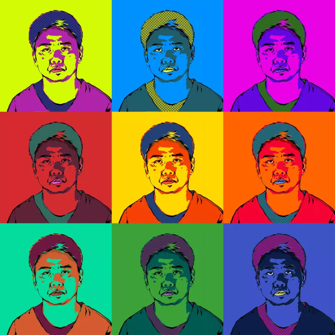 不信你看两张图片,上面是网友的P图合集,下面是我们北方公园的灵魂画手杰克·琼比模仿 Andy Warhol 风格做的,哪个更波普一些?