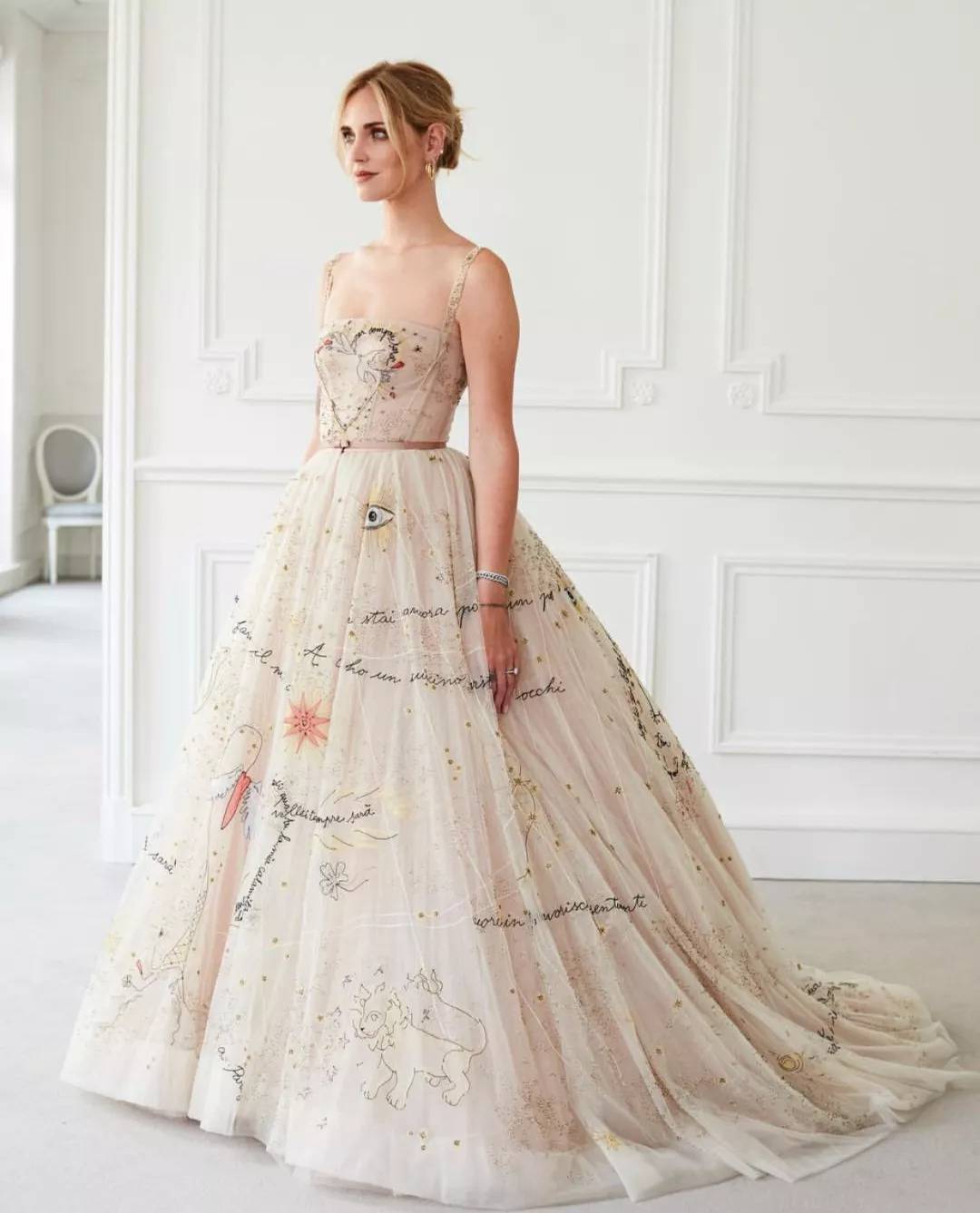 这张Chiara Ferragni婚后派对晚礼服试装照片在其本人及Dior官方Instagram账号上共获赞超过266万次