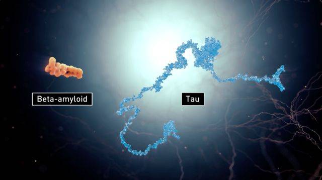 β-淀粉样蛋白(左)和tau蛋白(右),图片来源:NIH National Institute on Aging