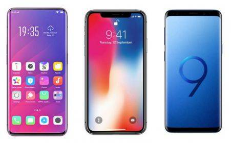 OPPO FindX、iPhone X 和 Samsung Galaxy S9,都属于高端智能手机类型;其中OPPO和Samsung均采用的Android操作系统