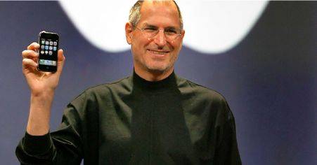 2007年1月9日,乔布斯站在旧金山Macworld大会表演了一次堪称完美的产品展示会。iPhone以其独特的外形设计牢牢地抓住了观众们的注意力。全机没有键盘,主屏幕只有一颗home键;它不能更换电池,所以全身纤薄而性感,一体化程度非常高,它内部色彩亮丽的软件也让人印象深刻。