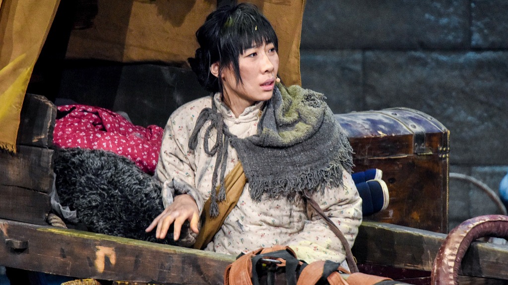 舞台上,女演员任素汐和左小青再现了电影《1942》中的片段。和原版徐帆饰演的花枝不同,用徐峥的话形容任素汐的表演是嘎嘣脆,能感受到她的急,连带着台词、动作、表情的传达都带着一股劲儿。