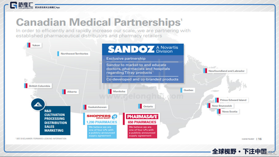 医用是目前用的比较多的,Tilray已经与加拿大两家最大的连锁药店Shoppers' Drug Mart和Pharmasave签订了供应协议。另外,Tilray今年的主要任务之一,与Sandoz Canada合作,研发新的基于大麻的药物,Sandoz并将采取行动将药物分发到医院和药店。Tilray首席执行官Brendan Kennedy表达过:“联盟是将医用大麻合法化为传统医药的漫长道路上的一个重要里程碑。