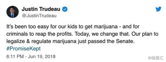在法案获得通知之后,特鲁多在twitter上宣布了这一消息。从这条twitter中我们可以一窥他的想法——“既然有这么多非法的方式让我们的孩子接触到大麻,而且攫取了这个产业的利润,何不我们自己立法规范大麻的消费。”