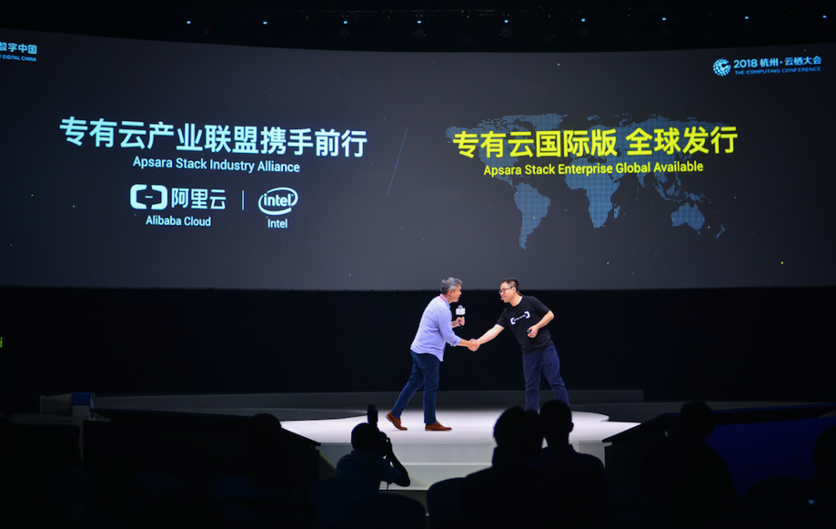 大会主论坛上,英特尔销售市场部全球副总裁、全球云销售事业部总经理朱杰豪与阿里云专有云事业部总经理、企业服务事业部总经理马劲,共同宣布成立专有云产业联盟(Apsara Stack Industrial Alliance),该联盟专注为阿里云专有云解决方案平台建立生态体系。