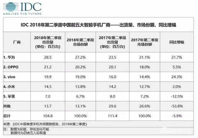 如我们所见,在苹果营收组成中第二重要的中国市场,其当下市场份额事实上已经缩小到了10%以下。诸如IDC数据显示,2018年第二季度苹果在中国市场出货量同比下滑12.5%,市场份额也只有6.7%,可以说今年苹果推出的三款新iPhone如果不能打动用户,在未来一年,苹果在中国市场又将危矣。
