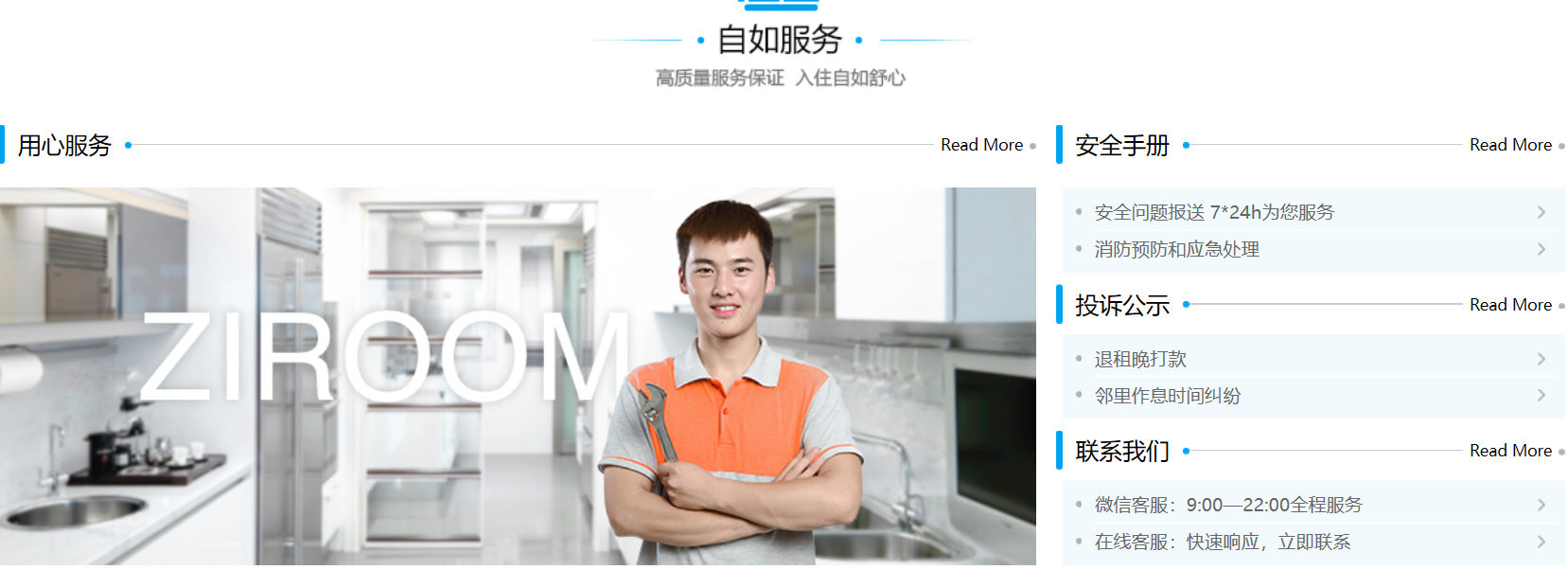 展示在自如官网首页的“自如服务”