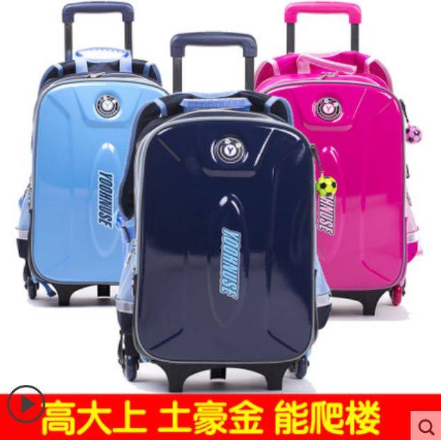 为了帮小学生减少负担,居然还有下面这种“高大上、土豪金、能爬楼”的拉杆箱书包。