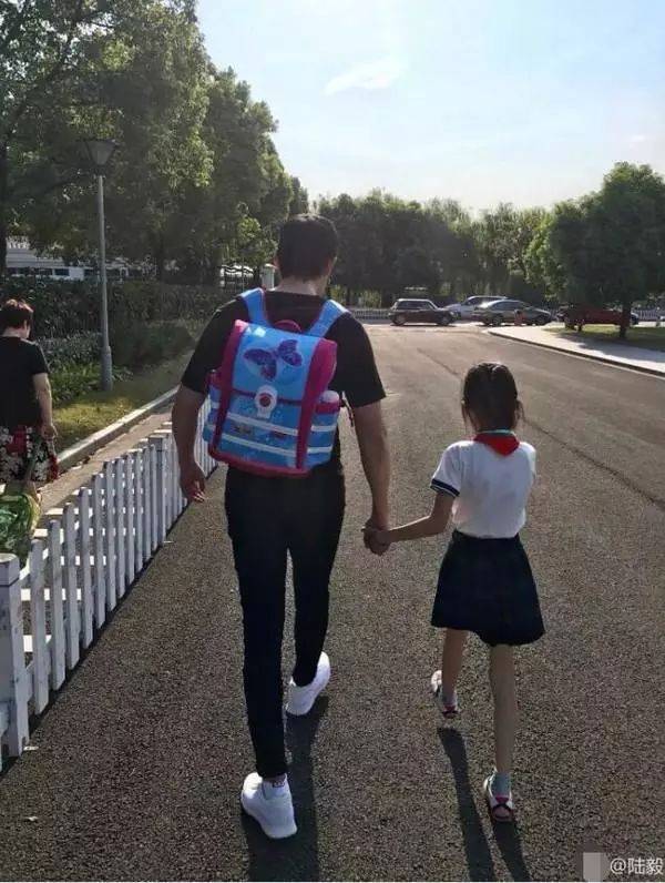 但是平心而论,这个大大的书包,背在陆毅这个一米八的大个子上,都显得大,更何况是旁边瘦弱的小女孩?
