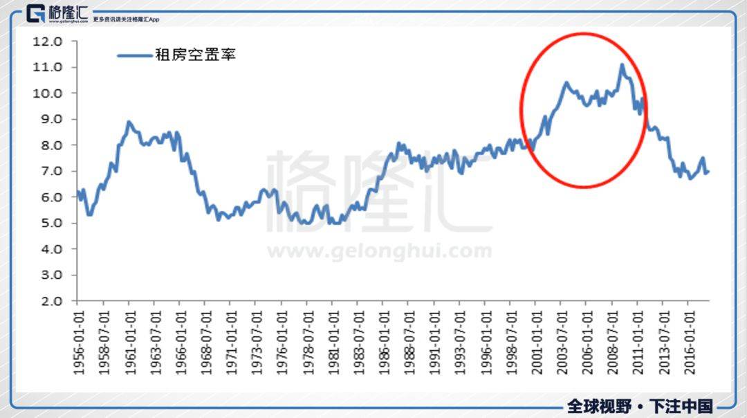 看租房空置率,当前的水平是90年代以来最低水平,而2008年崩盘前,租房空置率已经高位很长一段时间了,2000年股市崩盘前租房空置率也开始攀升。