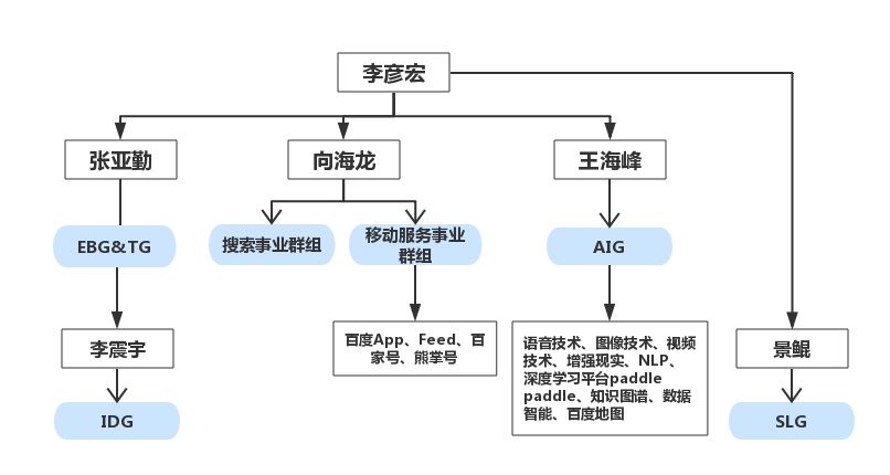 新兴业务事业群组EBG&TG由张亚勤博士负责,包括基础技术、百度云业务、教育以及国际化业务。
