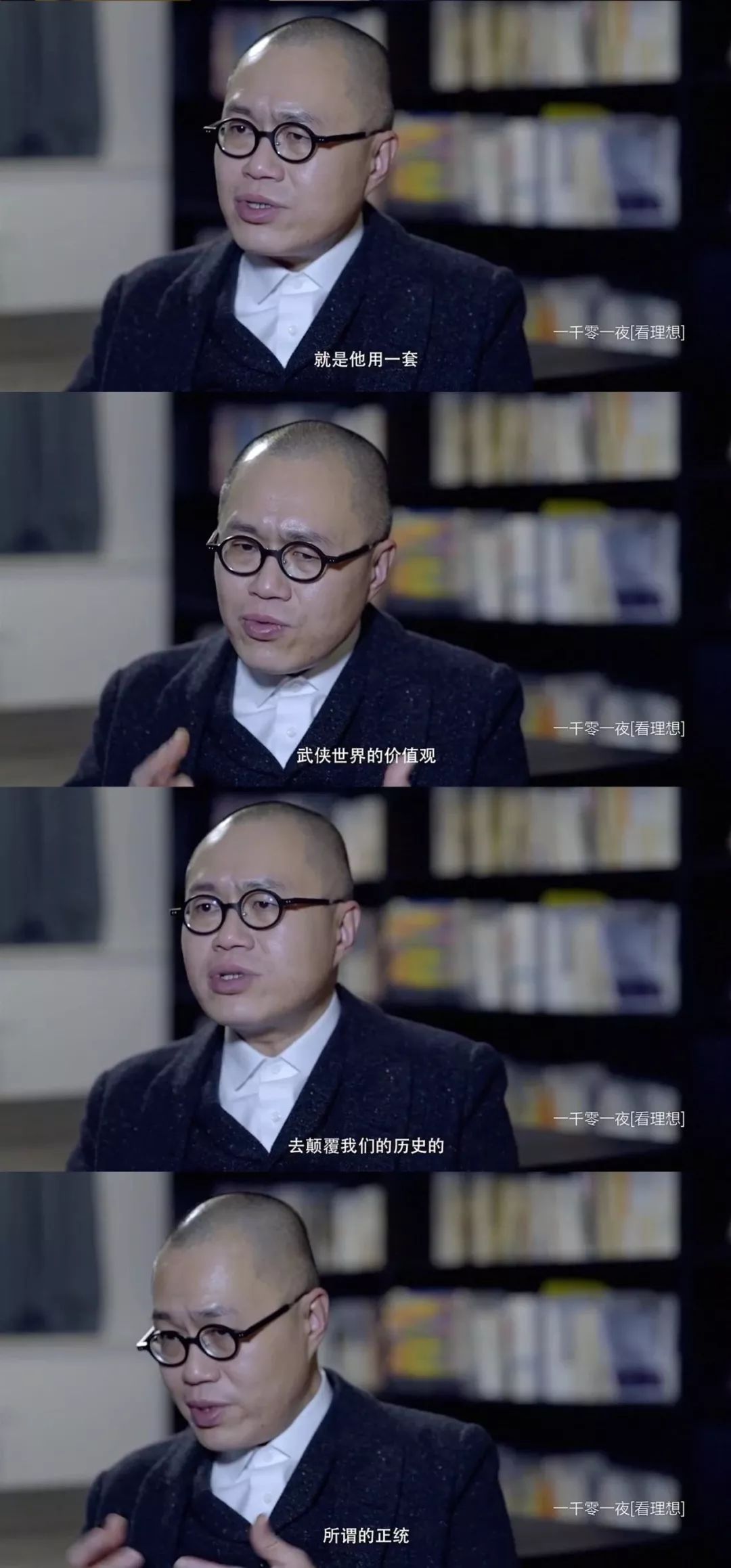 这个时候我们看到,他用一套武侠世界的价值观,颠覆了我们历史里所谓的正统。