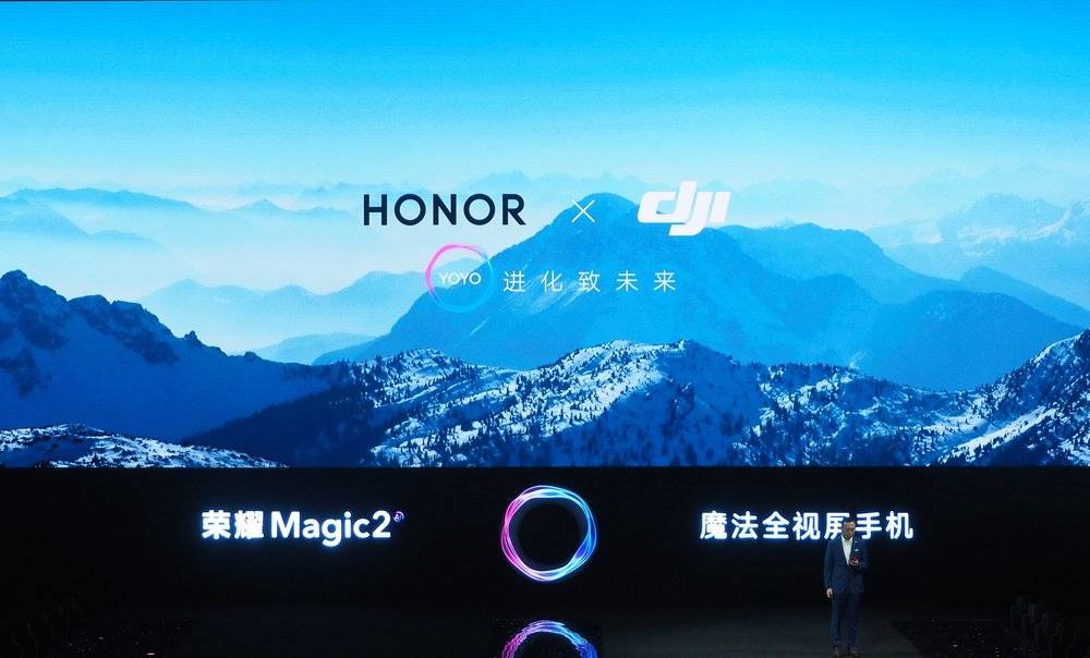 发布会上的一个亮点,是荣耀宣布大疆达成战略合作,并在现场展示了利用 YOYO 语音操控 Mavic 无人机进行起飞、拍照、降落的过程。