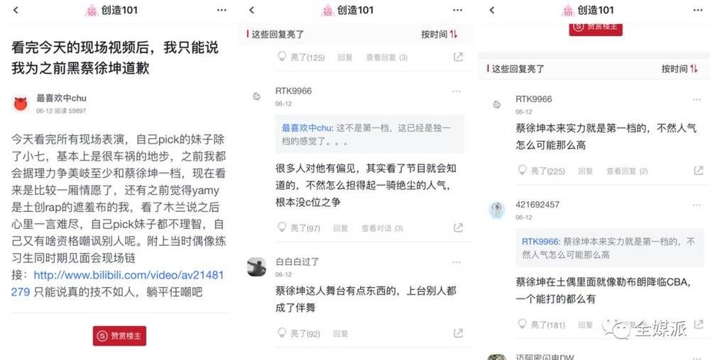 不少人主动表示,为曾经对偶练选手蔡徐坤等人的不理性评价,以及对他们粉丝的攻击感到抱歉。