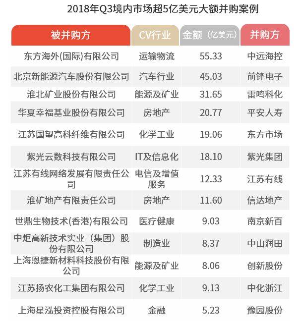 而在9月的跨境并购交易中,交易规模最大的是中色股份(000758.SZ)以1.989亿美元(约13.7亿元)的价格通过全资子公司中色新加坡有限公司购买PT BUMI RESOURCES MINERALS TBK持有的Pt Dairi Prima Mineral 51%的股权。该交易于2018年9月20日完成。