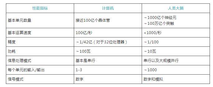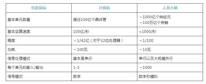 计算机和大脑相比,基本单元的信号模式也有相同和不同之处。晶体管采用数字信号,使用离散值(0和1)来表示信息。神经元轴突中的峰值也是一个数字信号,因为神经元在任何时间要么处于尖峰状态,要么处于非激活状态。当神经元被激活时,所有尖峰都是差不多相同大小、形状,这一特性有助于实现可靠的远距离尖峰传播。不过,神经元也利用模拟信号,它使用连续的值来表示信息。一些神经元(像我们视网膜中的大多数神经元)是无尖峰的,它们的输出通过分级的电信号传输的(与尖峰信号不同,它的大小可以连续变化),可传输比尖峰信号更多的信息。[7]