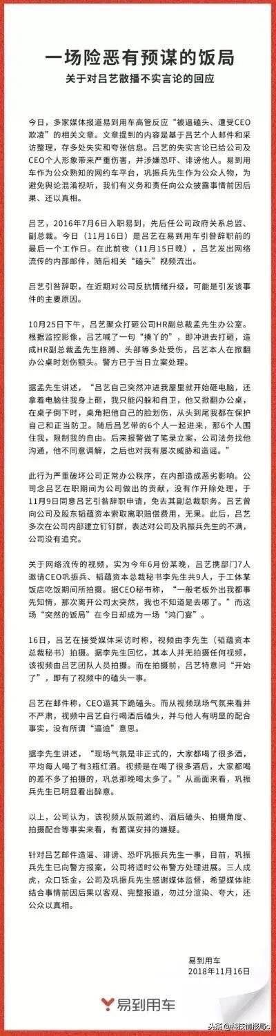 今天晚间,根据@一号财经的报道,易到做出了最新的回应:“下跪事件”是一场险恶有预谋的饭局。
