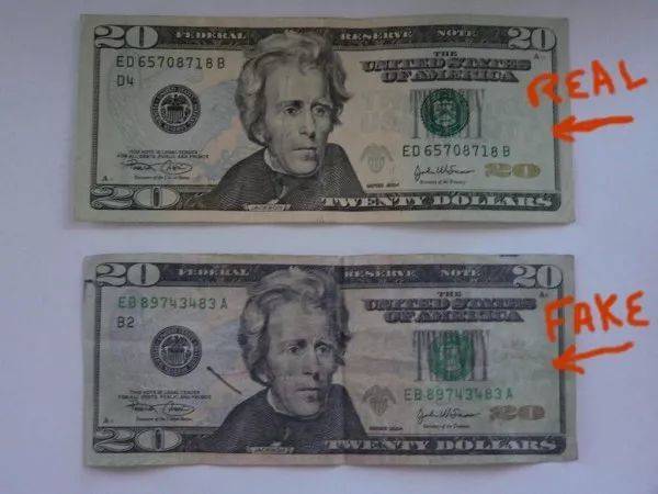 不过他的技术可不怎么好,用的是廉价的铜版纸,数字和字母模糊扭曲,华盛顿的头像也明显失真,后来有的假钞上连“Washington”也错拼成“Wahsington”。