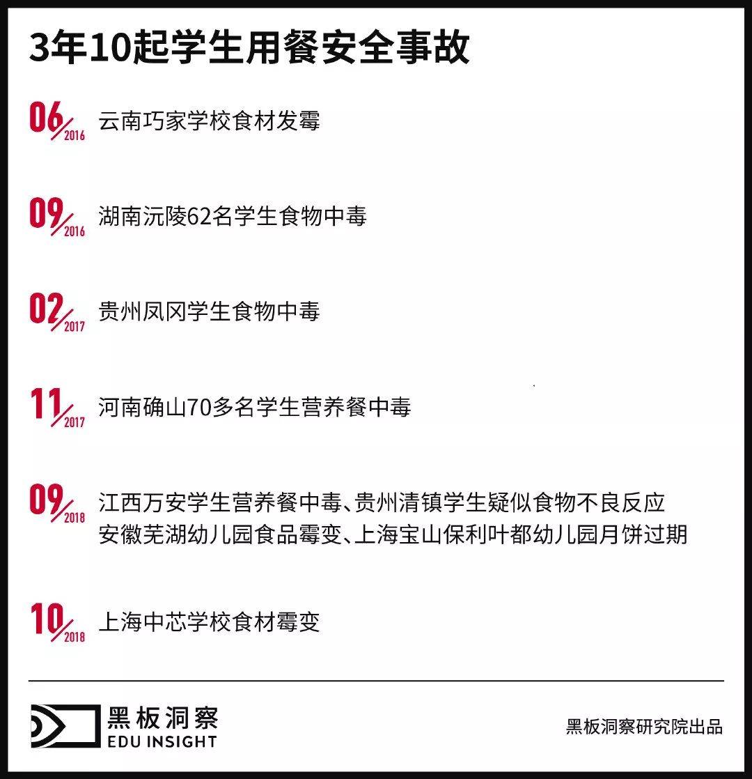 教育行业最大的利好因素是来自政策,当然最不能碰的依然是政策。由于学前教育的对象是幼儿,很多涉及到为学前教育提供服务的公司企业必然要受到严格的审查。事实上,由于审查的不到位,单在食品安全方面出现问题的事故就不在少数,有数据统计了近2年来发生的重大食品安全事故: