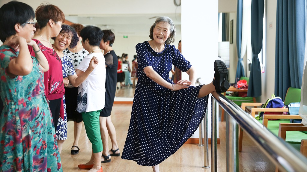 2017年,杭州,年轻的女模特安天天正为中老年服饰拍照。/ 视觉中国