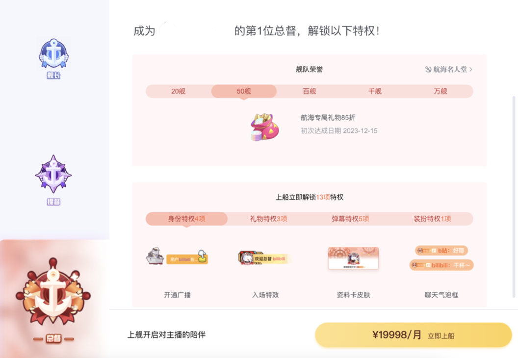 绝大部分主播也会为舰长、提督、总督,赠送不同价值的礼物。