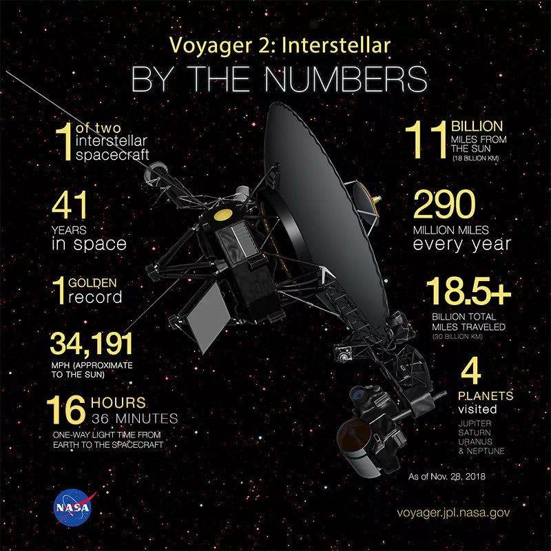 1977年8月20日离开地球的旅行者2号,历经41年、超过297亿千米的太空旅行,终于成为第二个完成这一壮举的人造航天器。第一个是旅行者1号,它在2012年率先进入星际介质。