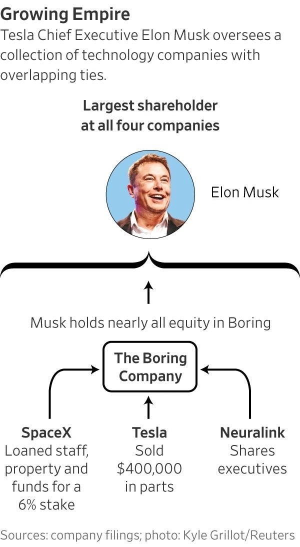 特斯拉首席执行官埃隆·马斯克(Elon Musk)新成立的隧道挖掘公司Boring将重叠资产分散到不同科技公司的做法引起了争议。