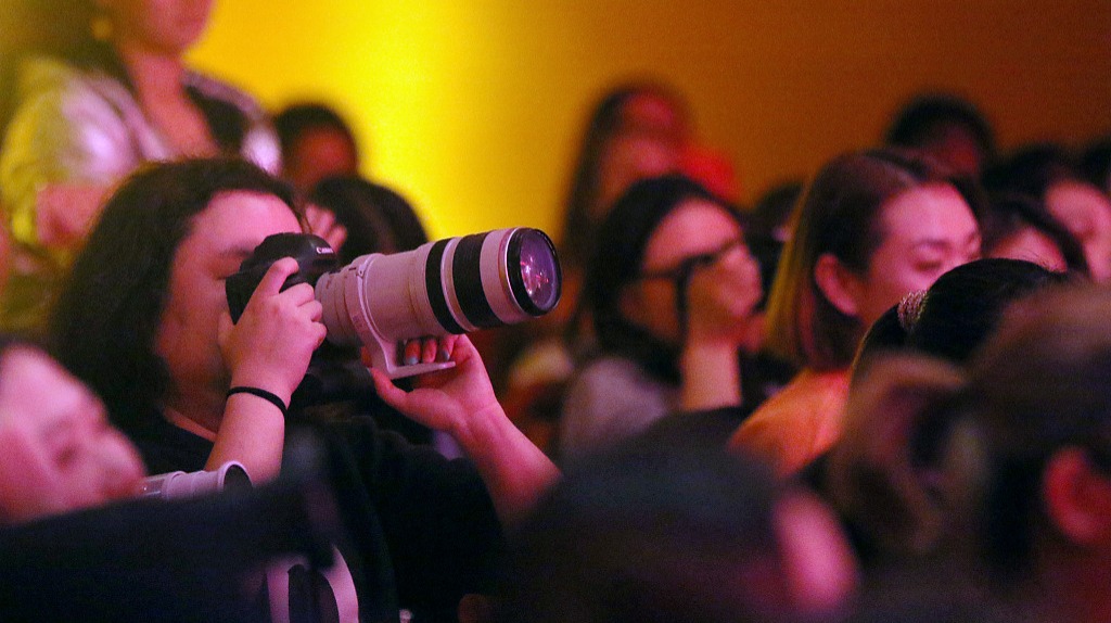 围笑用的相机是佳能1DX+70-200镜头(追星必备镜头之一,俗称小白兔),她老公用的是索尼AX2000高清摄像机。两个人一人拍视频,一人拍照片。