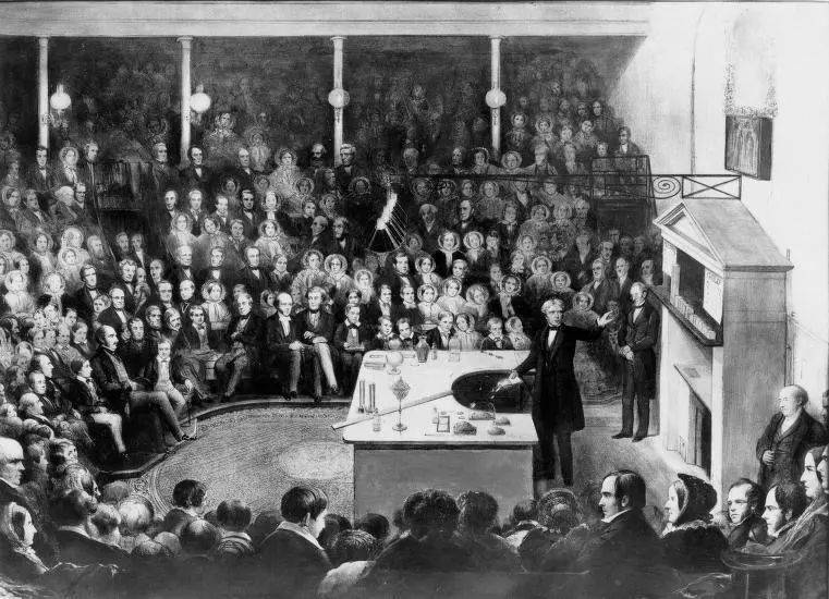 19世纪初叶,英国化学家汉弗莱·戴维(Humphry Davy)所主持的一系列公开科学讲座在伦敦大受欢迎,除了给他自己带来了数量庞大的贵族女粉丝外,也为英国皇家学会带来了超高的人气和收入。