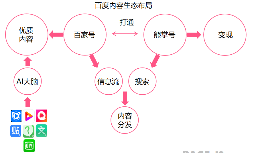 至今,依托百度系产品、百度百家号、熊掌号,百度已经形成完善的内容生态布局。内容层面,百度系产品积累的丰富内容通过百度大脑加工成更多内容,百家号与熊掌号扩展内容边界,通过信息流+搜索双引擎分发内容,并通过信息流变现。最终,变现反哺内容创作,整个内容生态实现循环。
